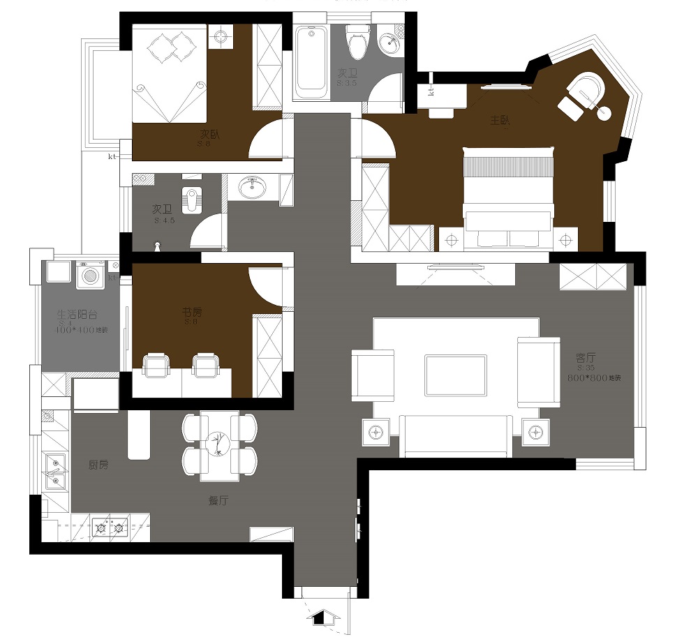 112㎡ · 三居室 · 復古風潮